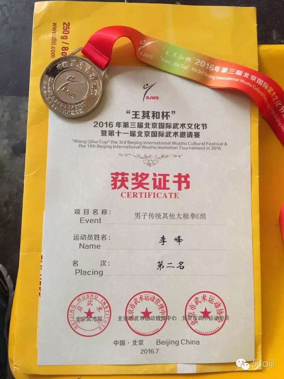 李峰,同时获得男子传统陈式太极拳 E1 组第六名。