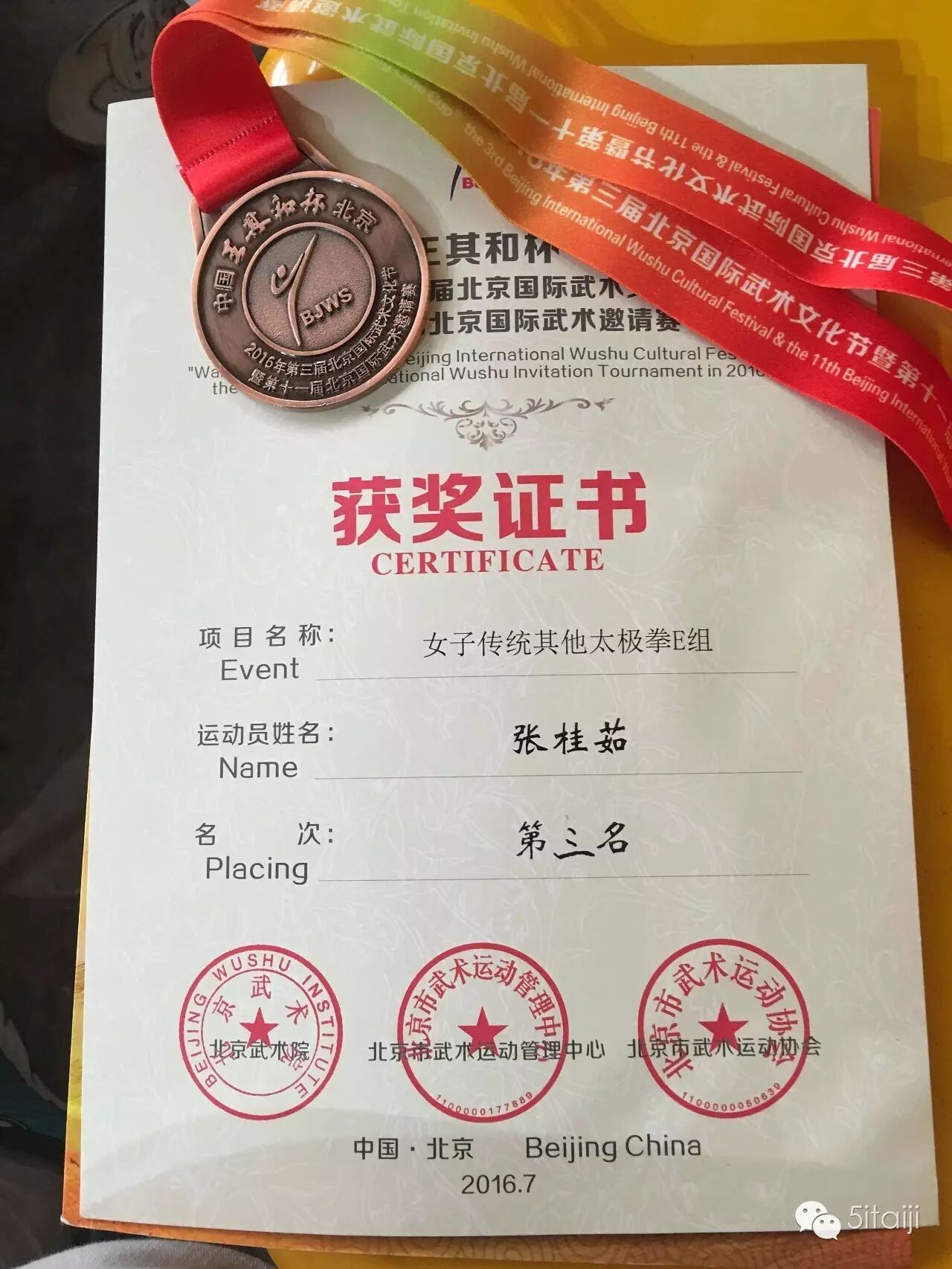 张桂茹,获得女子传统其他太极拳 E 组第三名。
