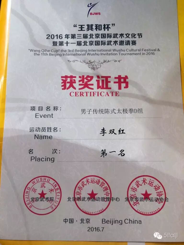 李双红,同时还获得男子传统太极剑 D 组第七名。